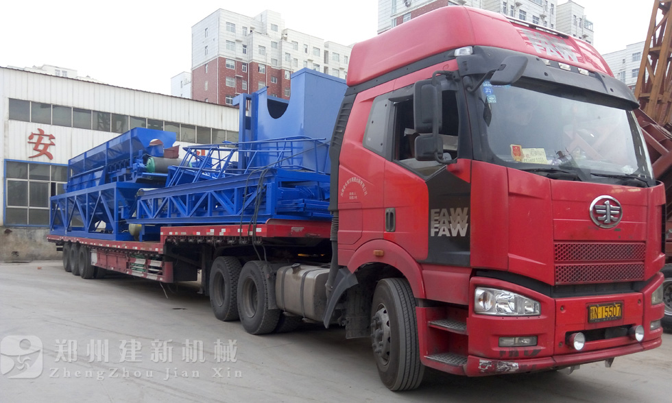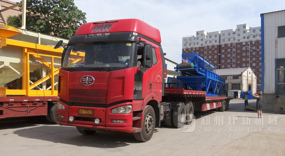 2015年6月8日,發走一批90型混凝土攪拌站之后,一套PLD1200混凝土配料機在鄭州建新機械裝車,即將發往周口市太康縣。